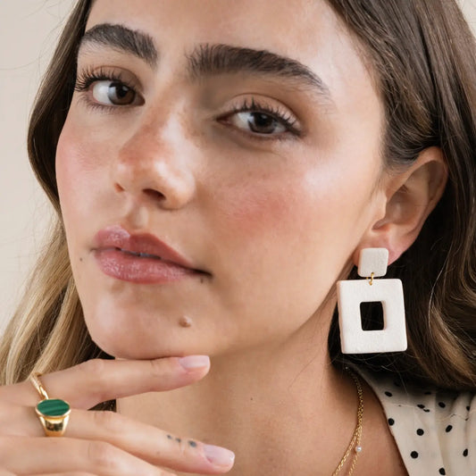 Round - Mother of Pearl Gemstone - Gold Earrings