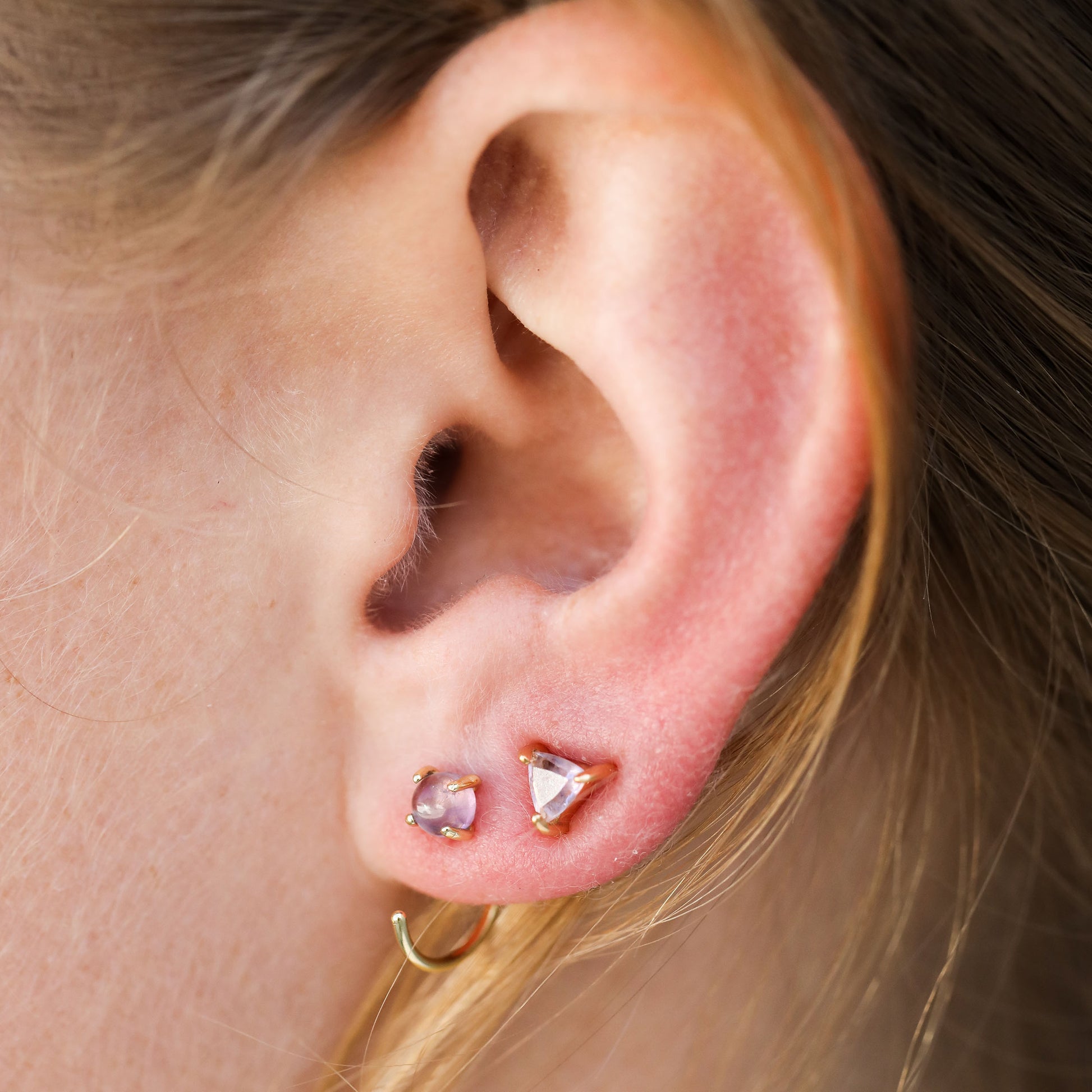 Loop the non-stone end through like you would a regular post, and let the stone sit against your ear.