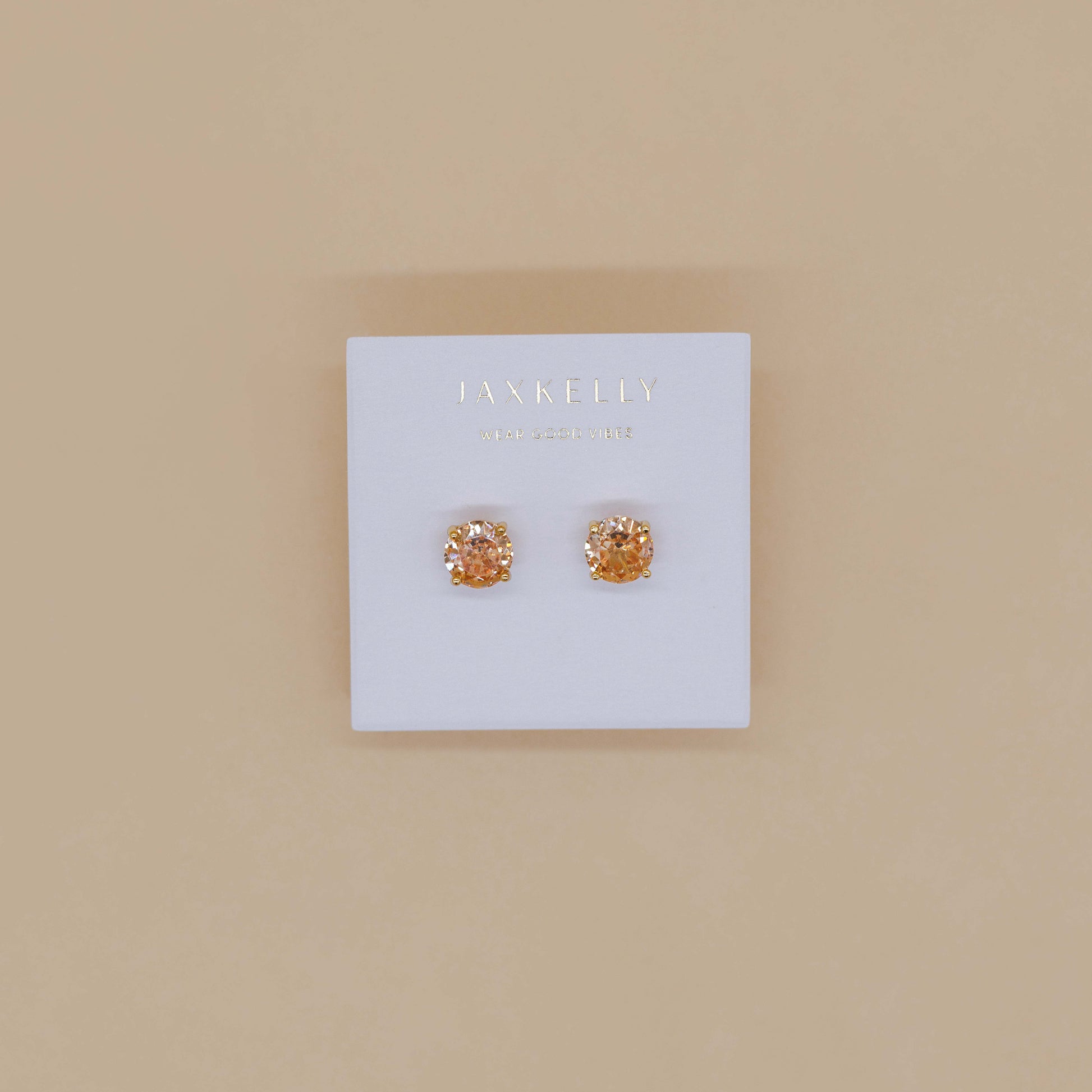 Round CZ- Champagne - Gold Earrings