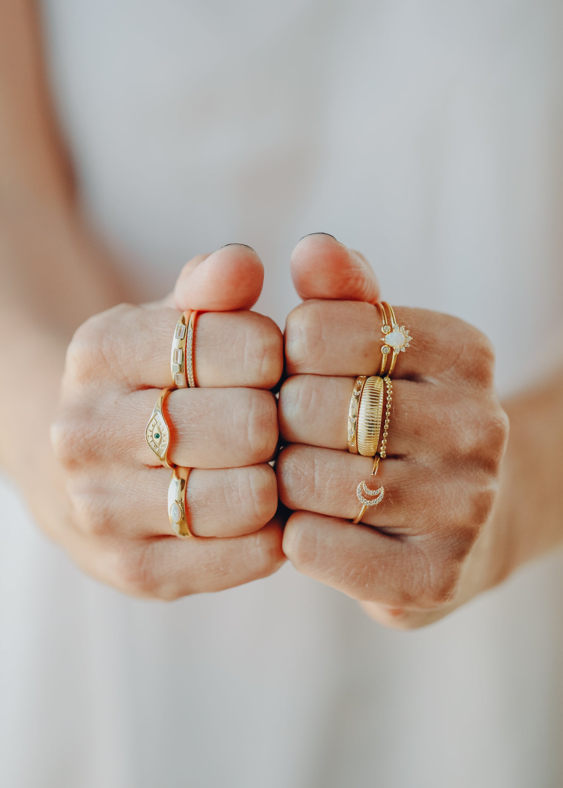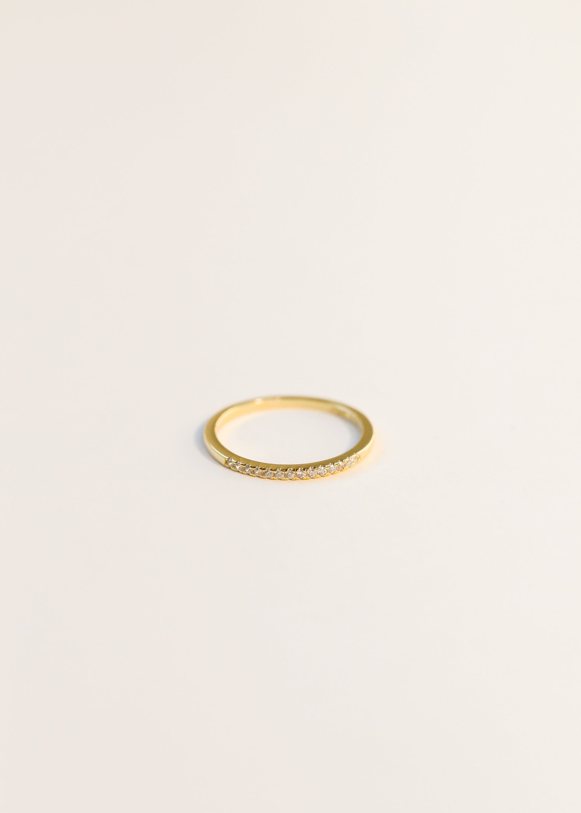 A delicate slice of crisp sparkling CZ's wrapped around a classic thin band of gold made to stack to your heart's content. We crafted our collection of rings to make every day a reminder of joy, self-love, and to shine from within.