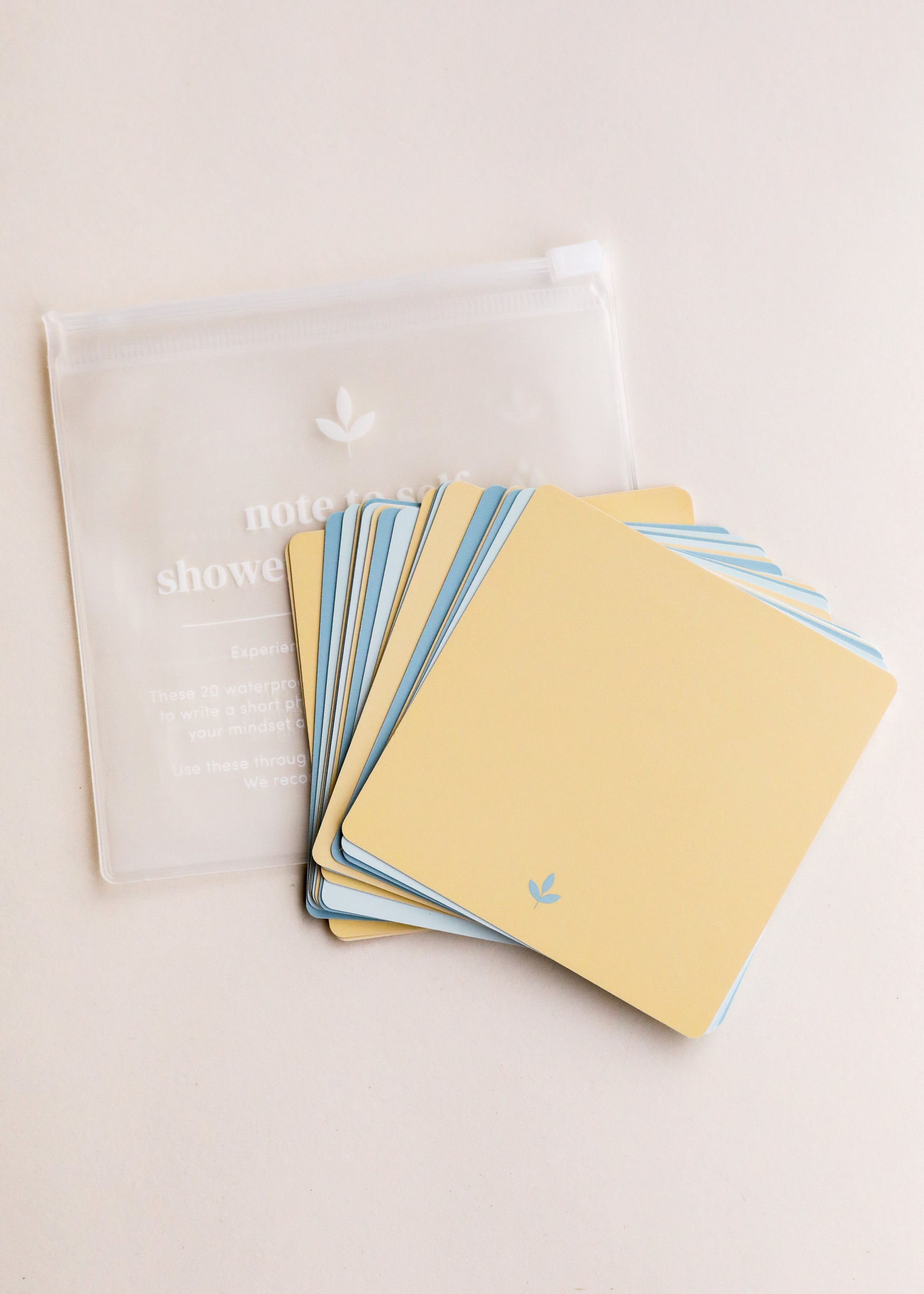 Our best-selling shower affirmation cards now with a new blank deck for you to write your own notes! Includes 20 blank cards for you to write a short phrase, quote, or reminder to improve your mindset and help you focus on your goals.