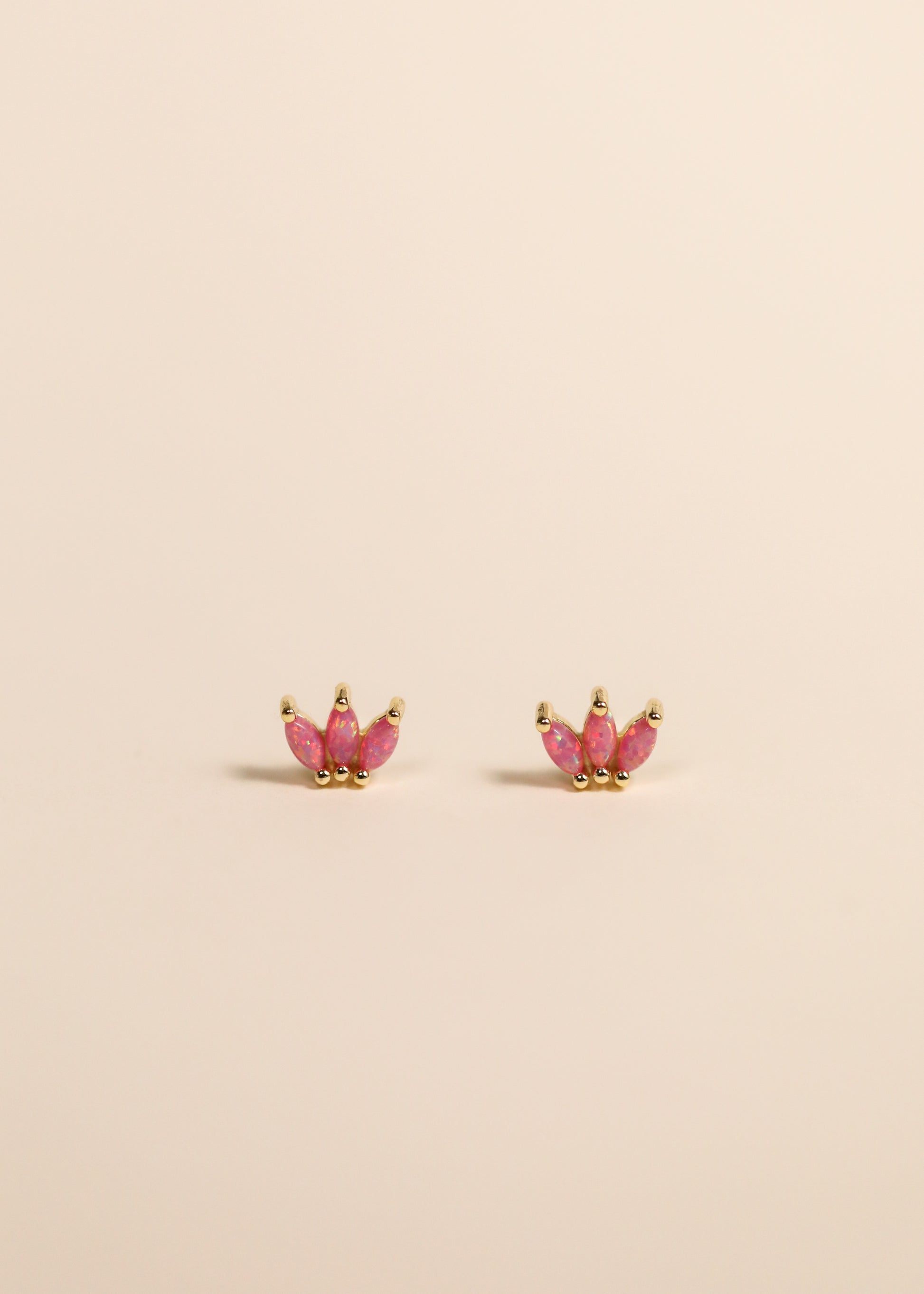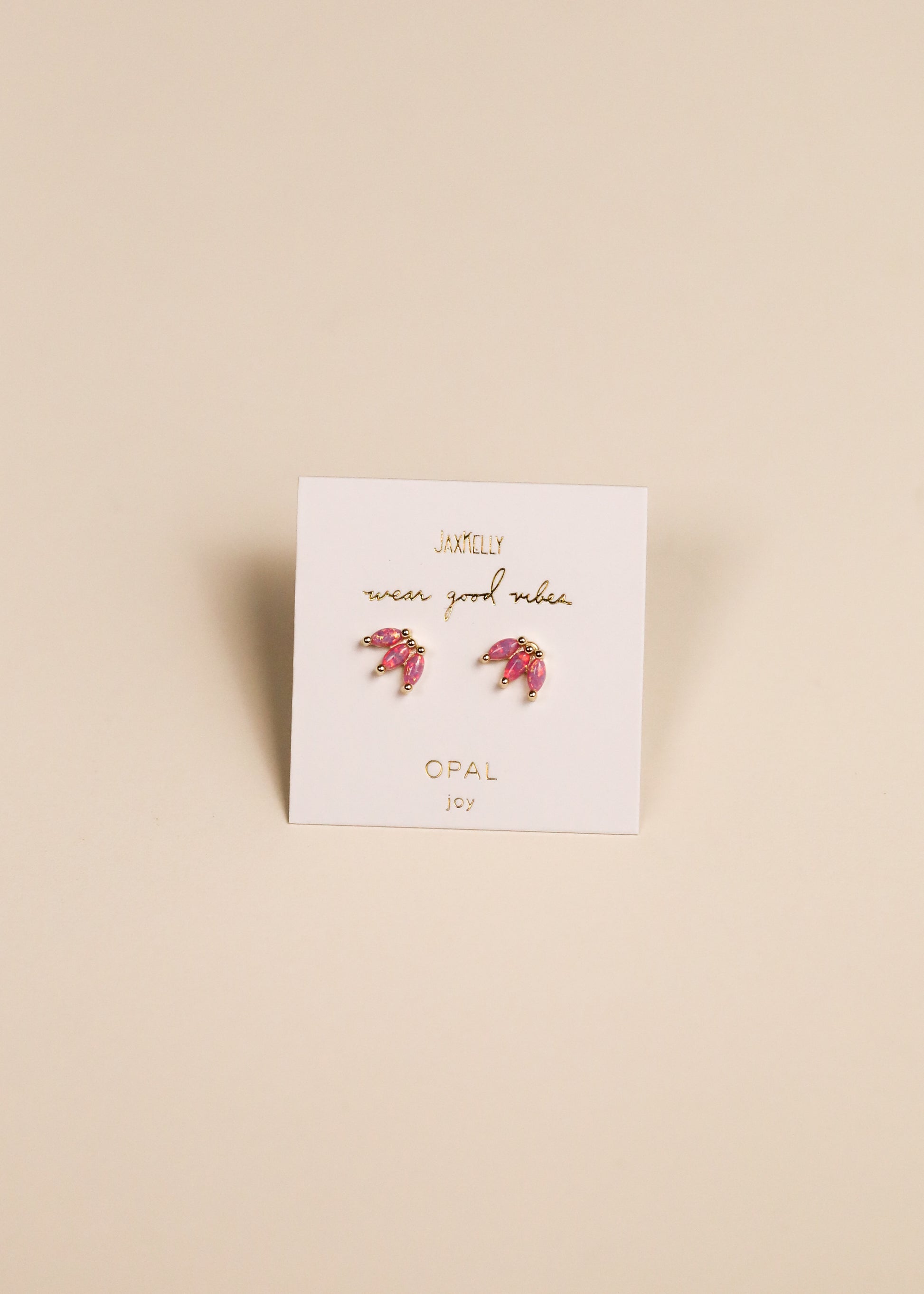 Pink Opal Stones set in a small crown set. Perfect for a pop of color on any occasion.