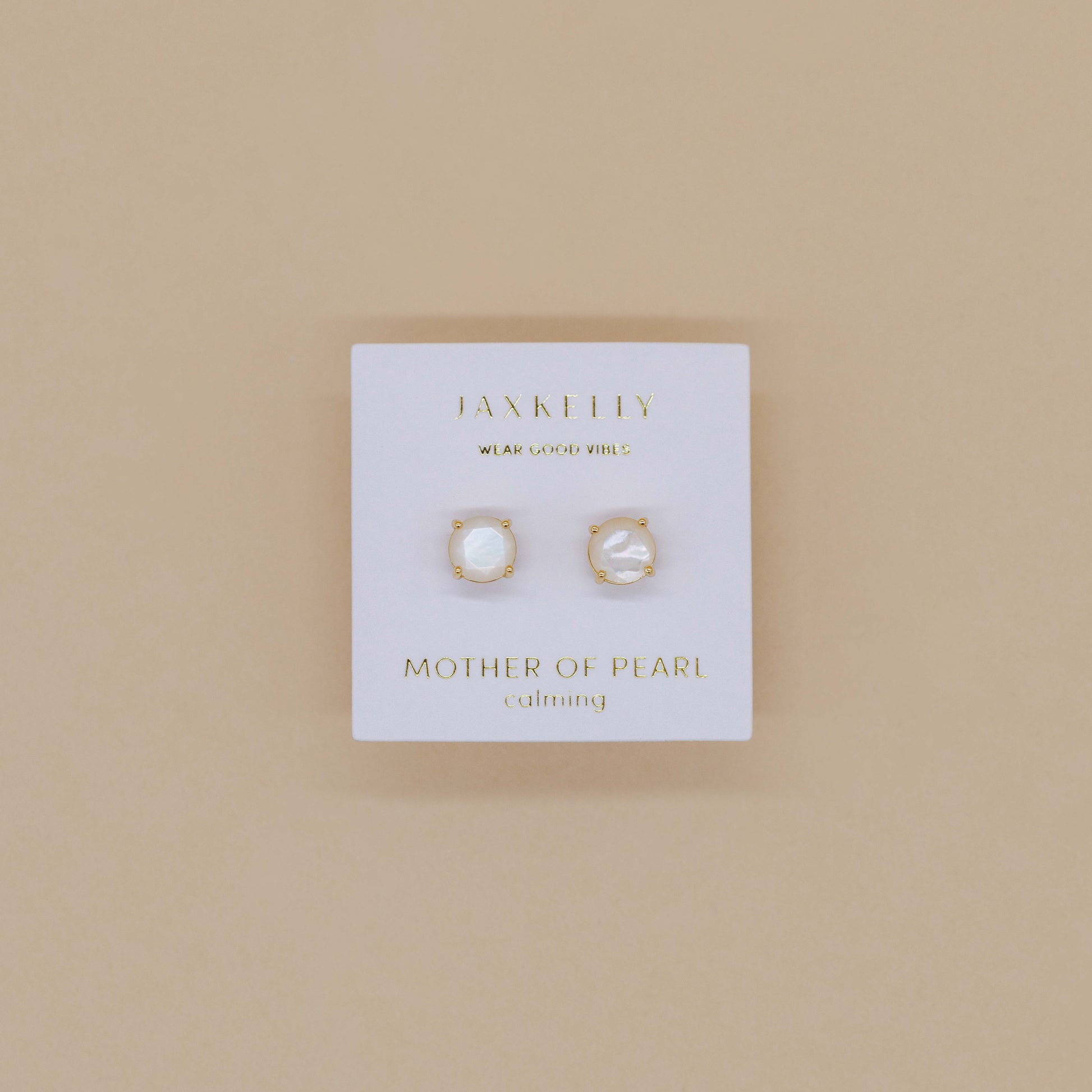 Round - Mother of Pearl Gemstone - Gold Earrings